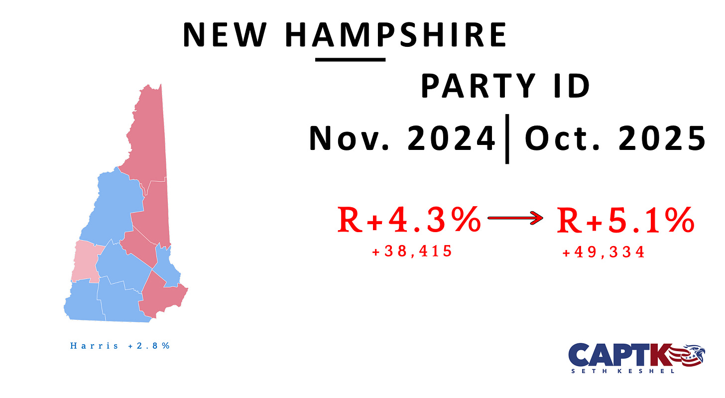 Net shift since September: New Hampshire updates quarterly. No change since last report. Expect new analysis in next month’s update.