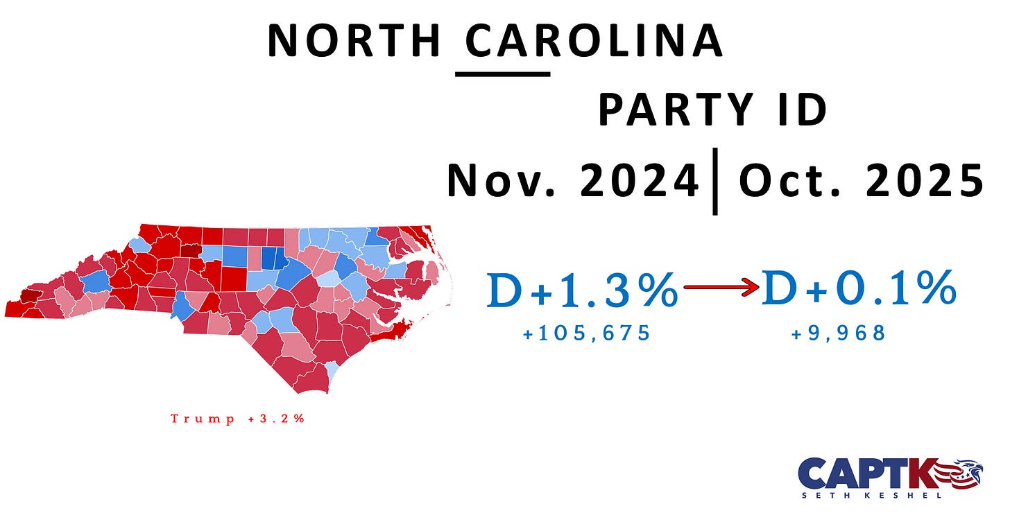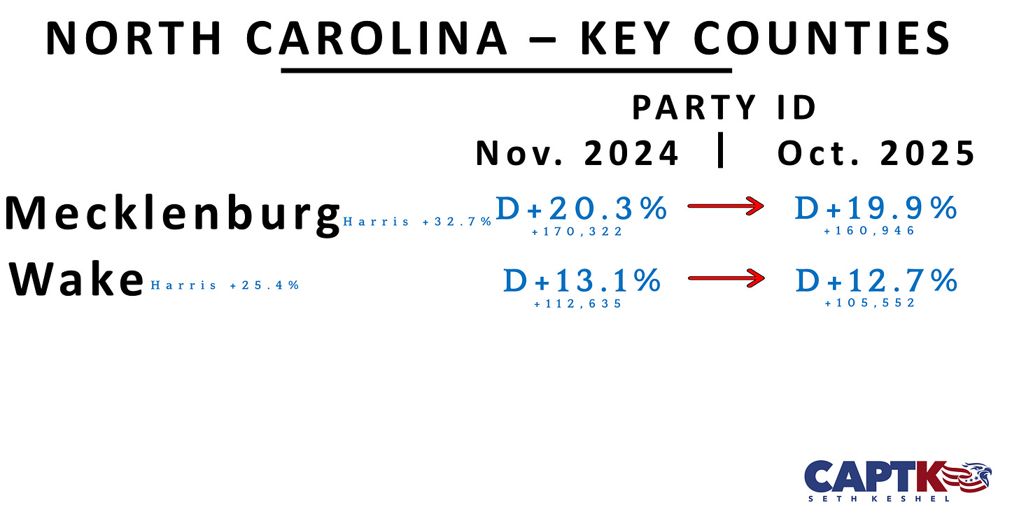 The next GOP presidential candidate, if these trends persist, should carry North Carolina by 5 or more points.