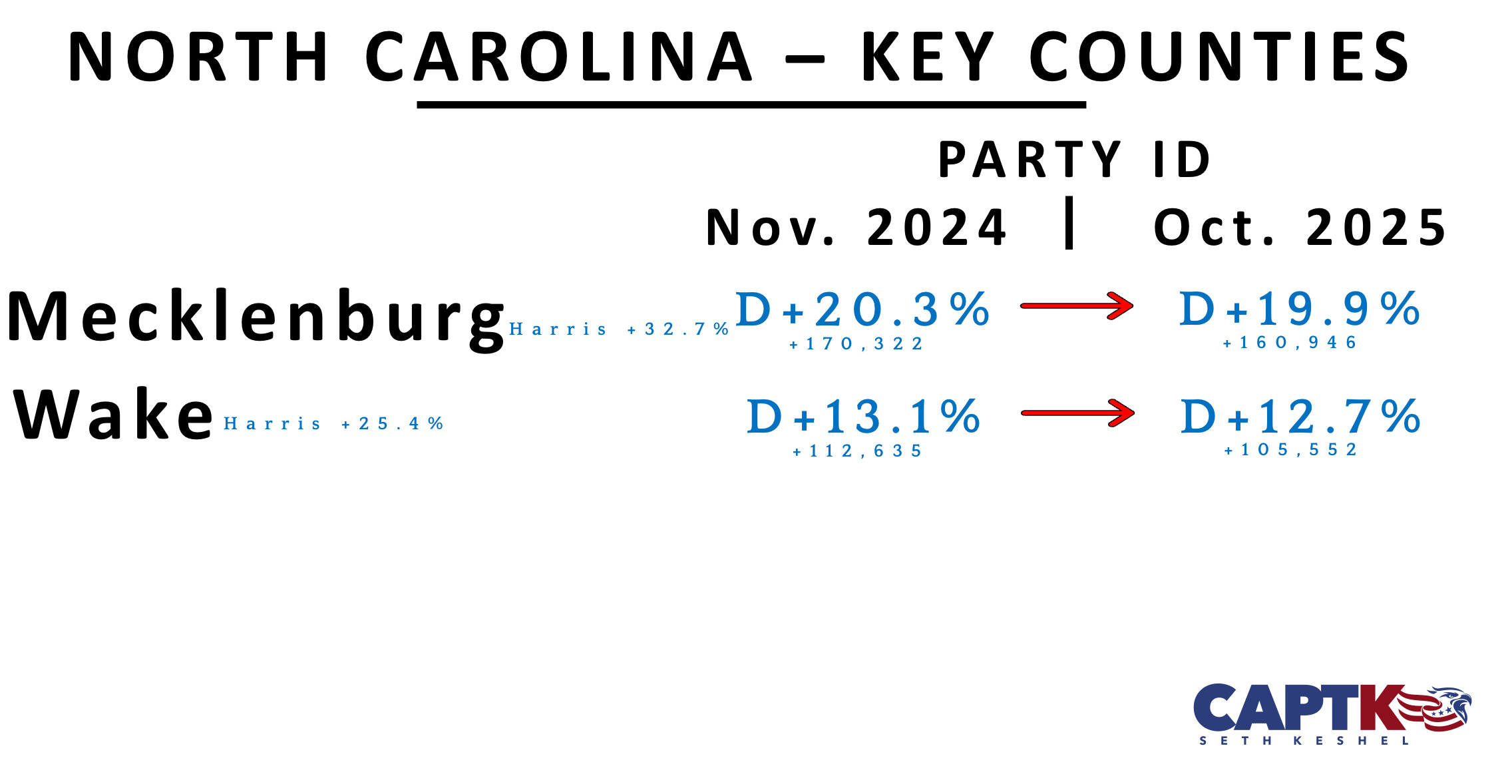 With former Democrat Governor Roy Cooper running for U.S. Senate, Republicans need all the help they can get. Wake County ticked rightward last month after a summer of Democrat gains, but Mecklenburg County continues to regrow its Democrat advantage that has been lost after voter roll maintenance.
