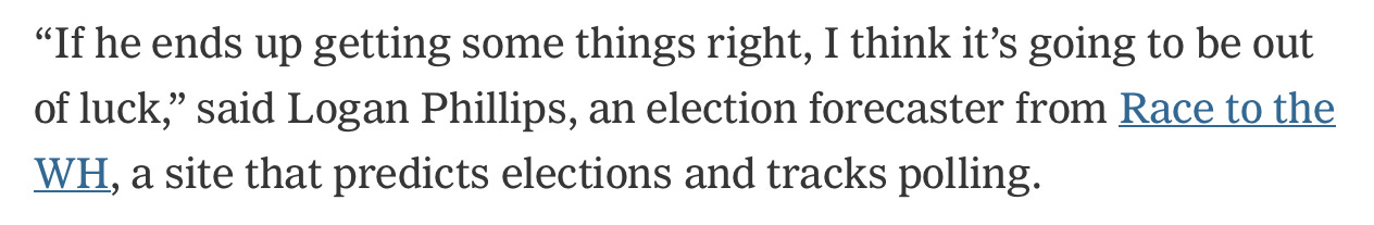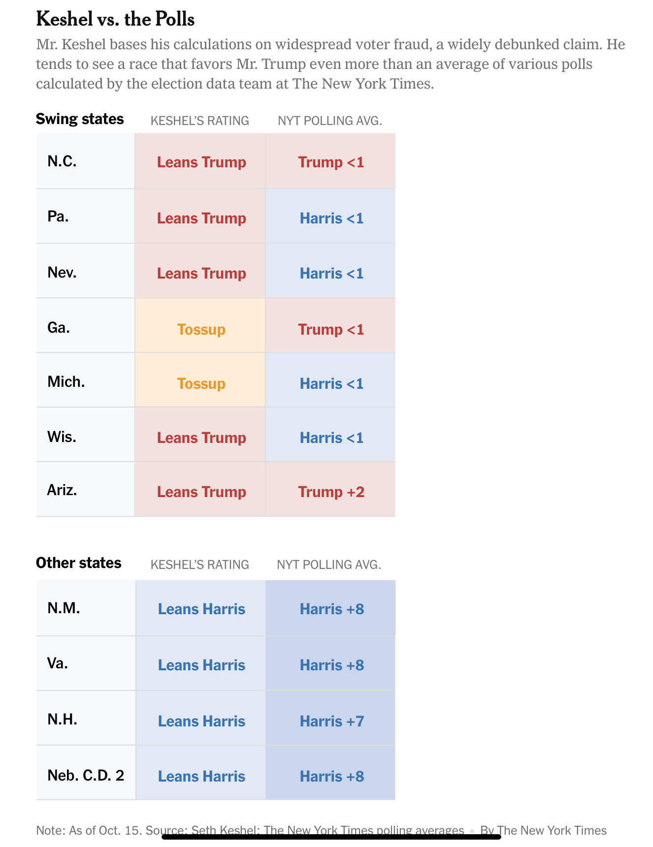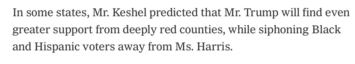 Before I get further into the article, I’d like it to be understood that I like Stuart Thompson, the author, and we had a good time over several interviews that led to his look under my analytical hood. I doubt we agree on much politically, but I don’t think this article hits below the belt. When he emailed me asking if I’d be interested in explaining my methodology - the only widely known one blending traditional analytics with a proprietary (and controversial) system of estimating ballot stuffing in key counties and states - I recognized there was an inherent risk that I would look like a fool if the 2024 election ended up the same way the 2020 race did. The voice of Steve Cassell echoed inside - “heroes do hard things.” So we did the interviews.