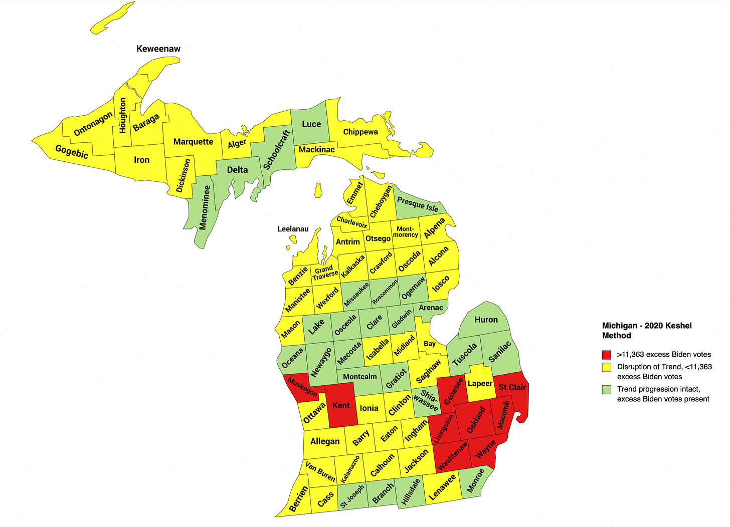 This piece isn’t intended to prove President Trump won Michigan in his reelection campaign of 2020. I’ve already written that treatise, and my thorough scraping of all 83 counties in the Great Lakes State suggests Trump’s margin of victory would have settled around 8.5% in a fair election, which happens to jive with the trends in the state since Obama’s high point in 2008.