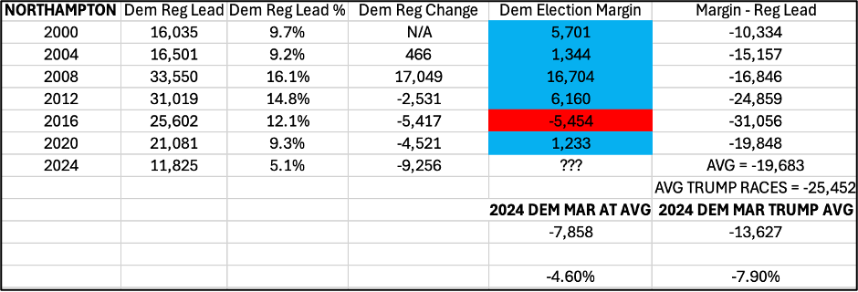 Pennsylvania’s pessimistic trend model was finished last month and shows Donald Trump with a likely 1.0% winning margin in that scenario. This piece focuses on likely outcomes based on registration analysis by county using Trump’s own registration to results coefficient, and soon, in a final piece just before the election, I will issue a formal projection blending all analytical disciplines, including using more registration data where necessary.