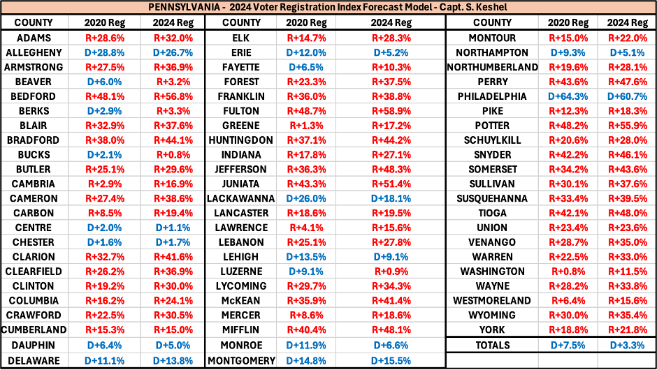 Pennsylvania - Trump v. Harris Voter Registration Index Forecast Model