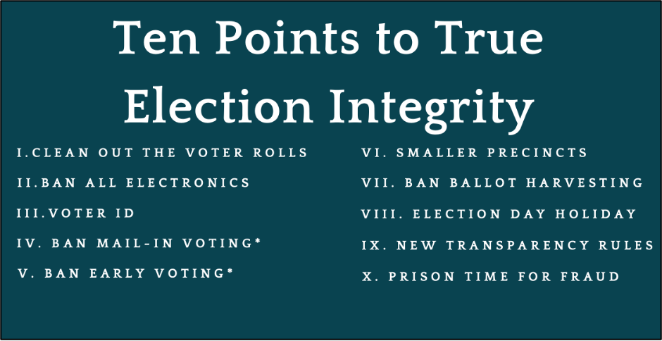 Three years ago, I published my Ten Points to True Election Integrity, which would offer Americans elections they can trust; however, readers of this journal most definitely know I am a realist above all else, and we are not on a pathway to have these ten points drive sea level change in our elections in the next four years: