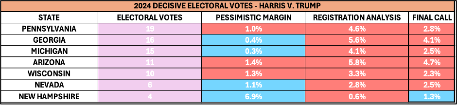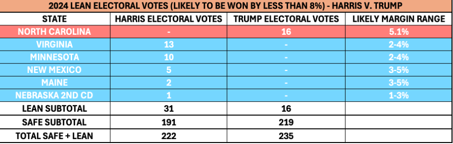 Electoral Votes Decided by Less Than 8% and Not Included in the 7 Decisive States (31-16 Harris)