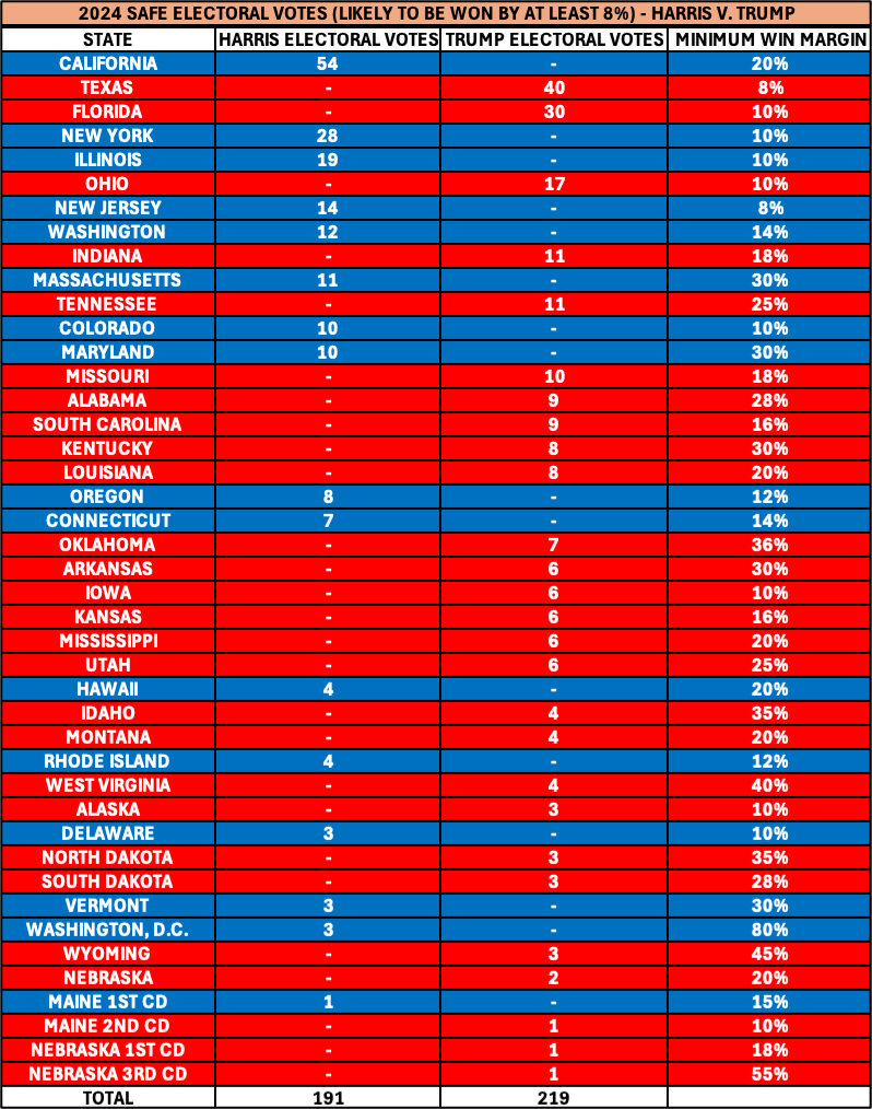 Electoral Votes Decided by At Least 8% (219-191 Trump)