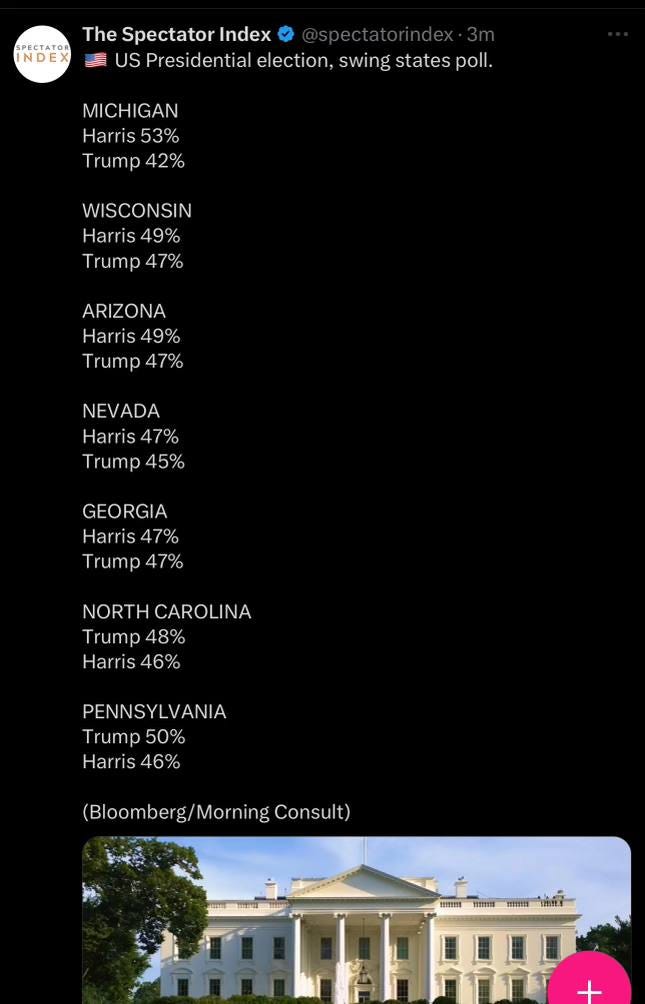 You expect me to believe even the internals of polls that have Trump ahead? That Trump can be taking a quarter of the black vote, nearly splitting the Hispanic vote, winning seniors, winning suburbanites, doing better with young voters than any modern Republican, and he still may not win Arizona or Georgia? Those of us who actually know what we are looking at realize you won’t find Iowa in the mid-double digits for Trump but Wisconsin in the Harris column.