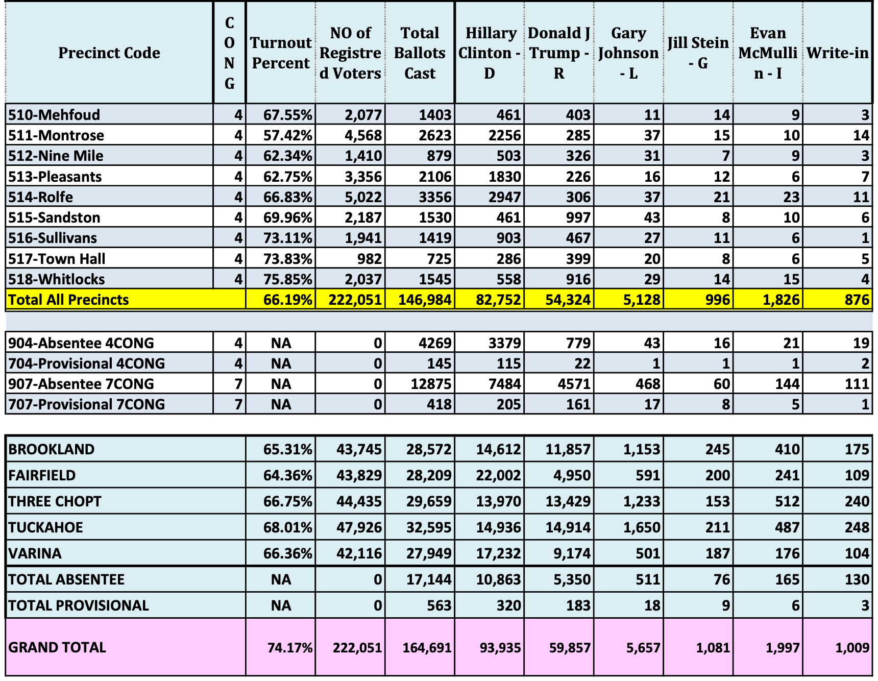 My lone concession is that Henrico removed absentee ballots from the 2016 precinct counts, as well; however, the drastic increase in absentee ballots, combined with a scan initiated by the Precinct Mapping Project, two databases operated by a 17-year old genius who has been assisting me with my research, and the scratch paper research of a local patriot named Ken V. got to the truth.