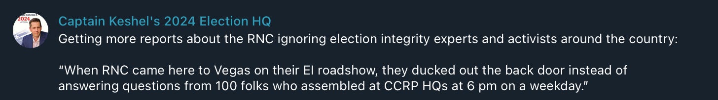 Seth this is not good news. I had hoped the change in leadership at the RNC would lead to actual reforms. And I agree that fighting election fraud after the votes have been cast/counted is a losing proposition. We have to be pre-emptive. I hope and pray that your message resonates with someone who can help the RNC change course. God didn't save DJT for another stolen election. Keep the faith brother! ✌️🙏