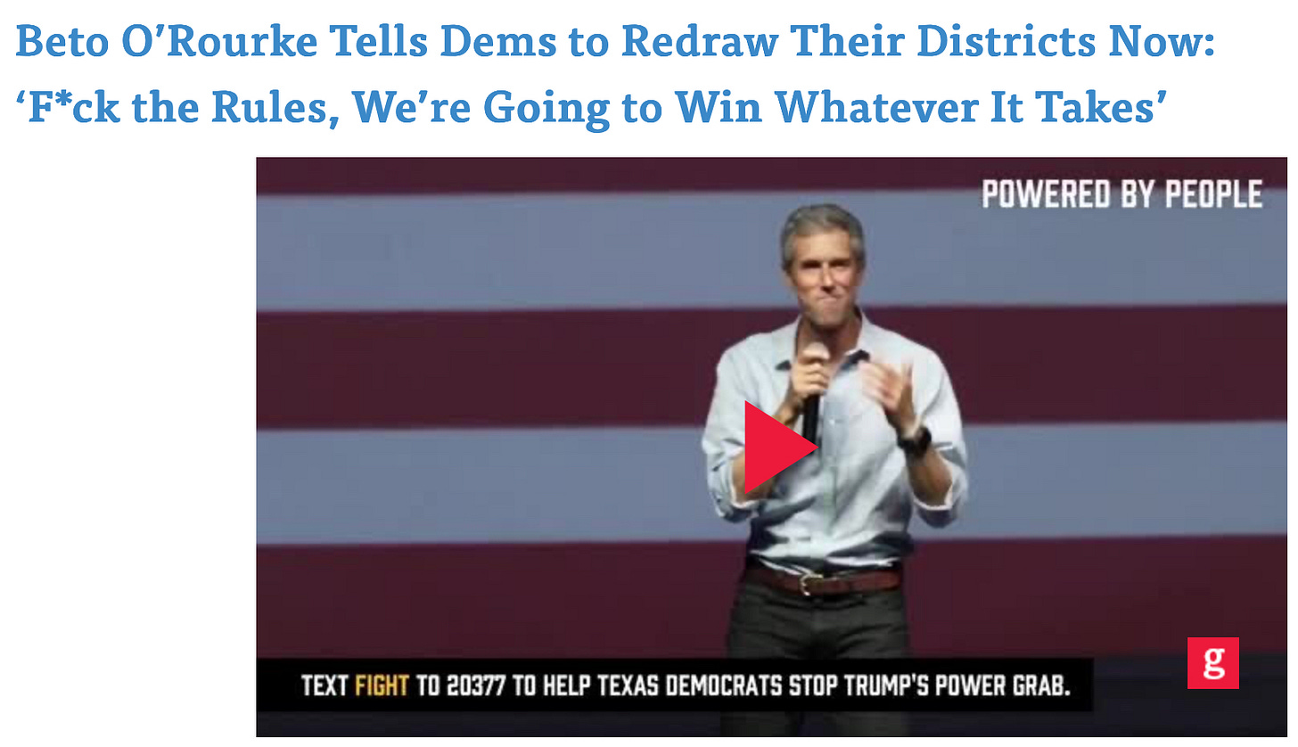 O’Rourke has been making the rounds again, this time using his brand of crass commentary to act as if Democrats have never gerrymandered Republicans out of would-be House representation.