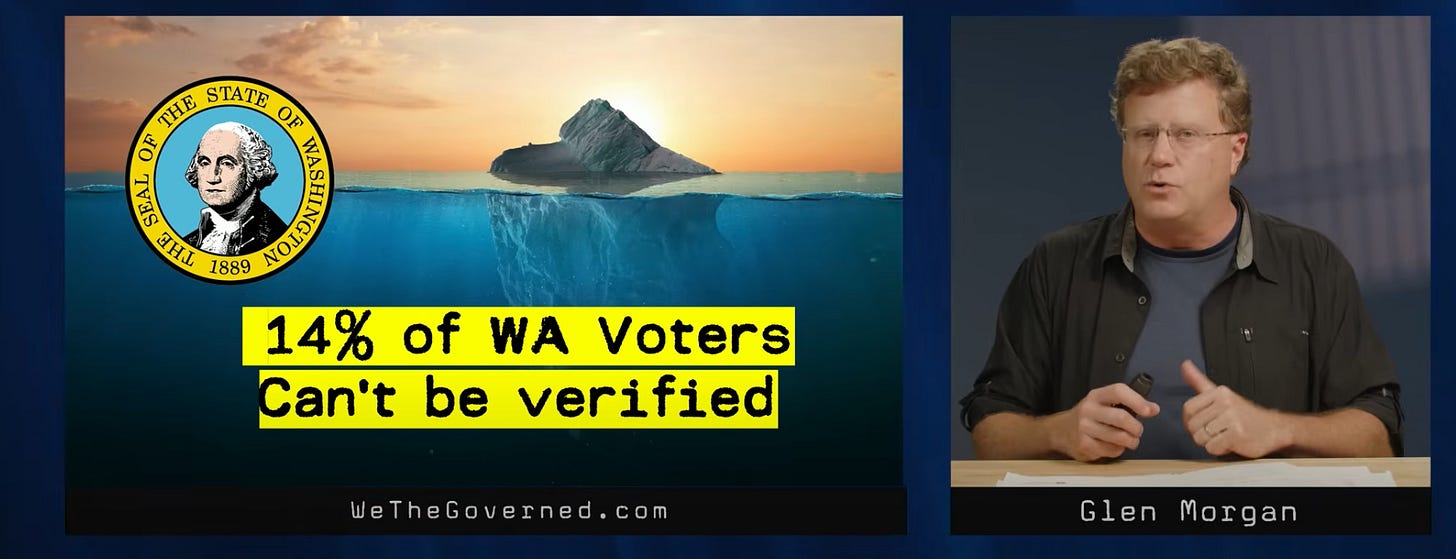One of the best investigators in America is Washington State’s Glen Morgan, who has a must-watch video detailing his investigation in the state’s voter roll. He finds that 14% of the state’s registrations are not in compliance with federal law, amounting to more than 700,000 potentially bogus registrations just on the surface.