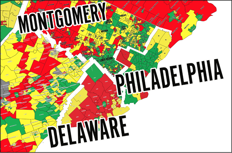 I have extensively mapped precincts in all battleground states since the 2020 election, and I believe it shows me where this practice is taking place. See the map of the Philadelphia area from four years ago, below: