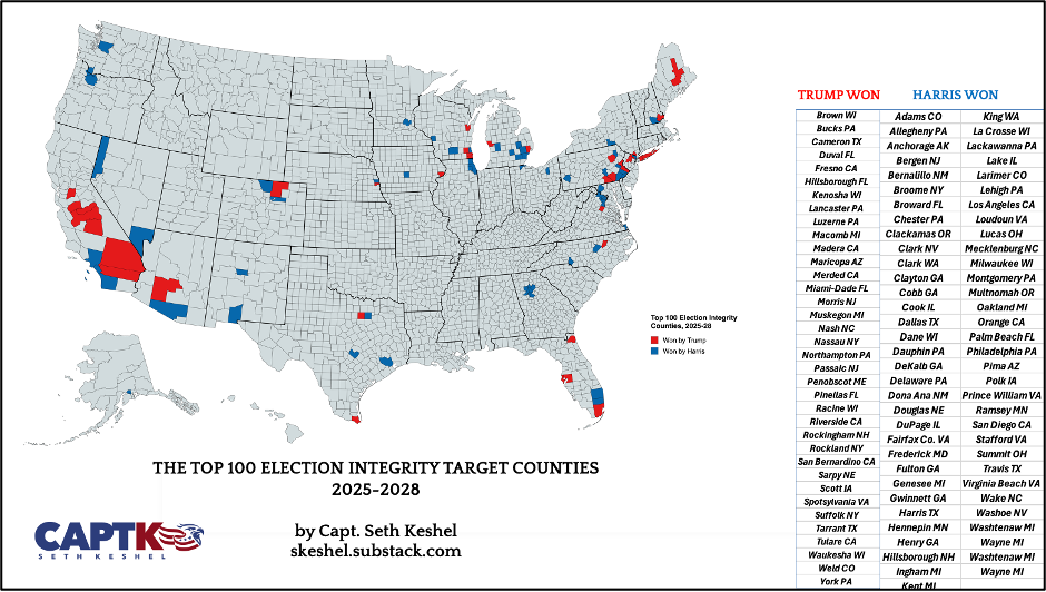 The Top 100 Election Integrity Target Counties for 2025-28, Unveiled