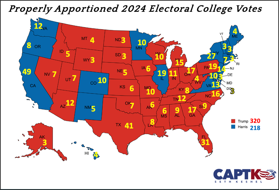So, what should the map have looked like with fair apportionment of Electoral College votes, assuming no results are tampered with at the Presidential level?