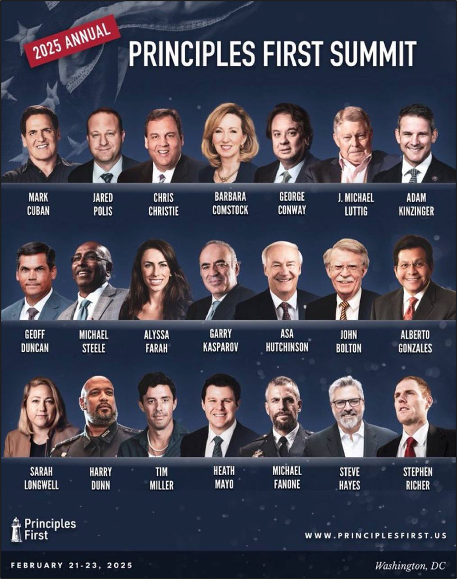 I ran across Lt. Colonel Steve Murray’s Telegram channel this morning and saw this flyer for the upcoming Principles First event in Washington, D.C., spanning from February 21-23, 2025: