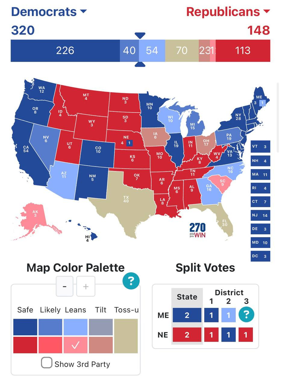 Marquette, another regime-favored pollster, has dropped the ball yet again – or have they? They are doing exactly as ordered in suggesting there is an eight-point national popular vote gap in favor of Harris, which would generate a map like this, making Florida and Texas vulnerable for flips: