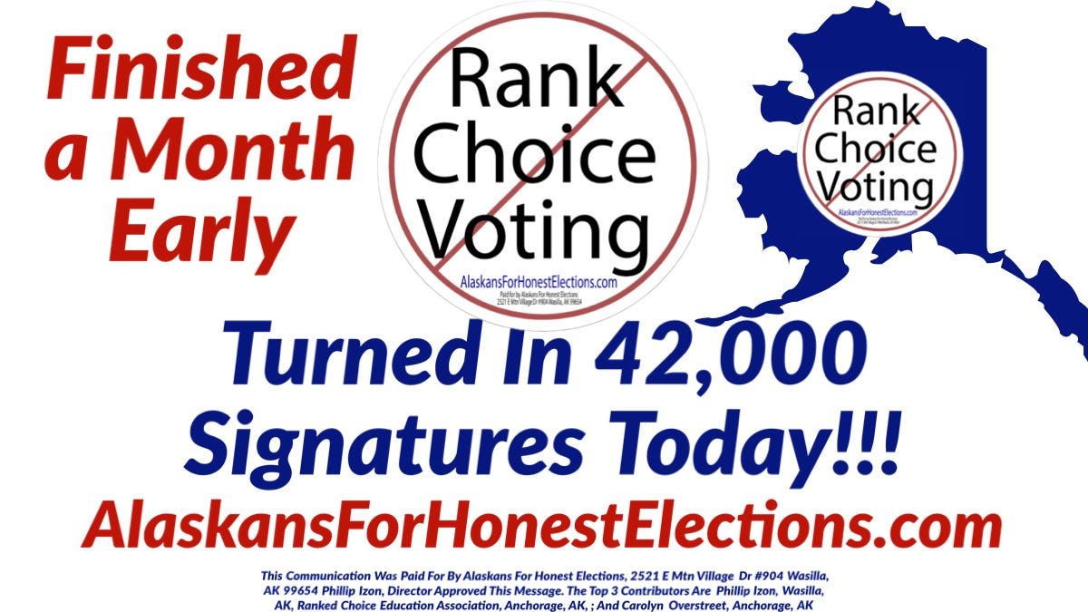 Alaskans for Honest Elections met the threshold to have a referendum to ban Ranked Choice Voting appear on the General Election ballot this November, exceeding the required number of signatures by over 60%. I broke this news online and it went ballistic.