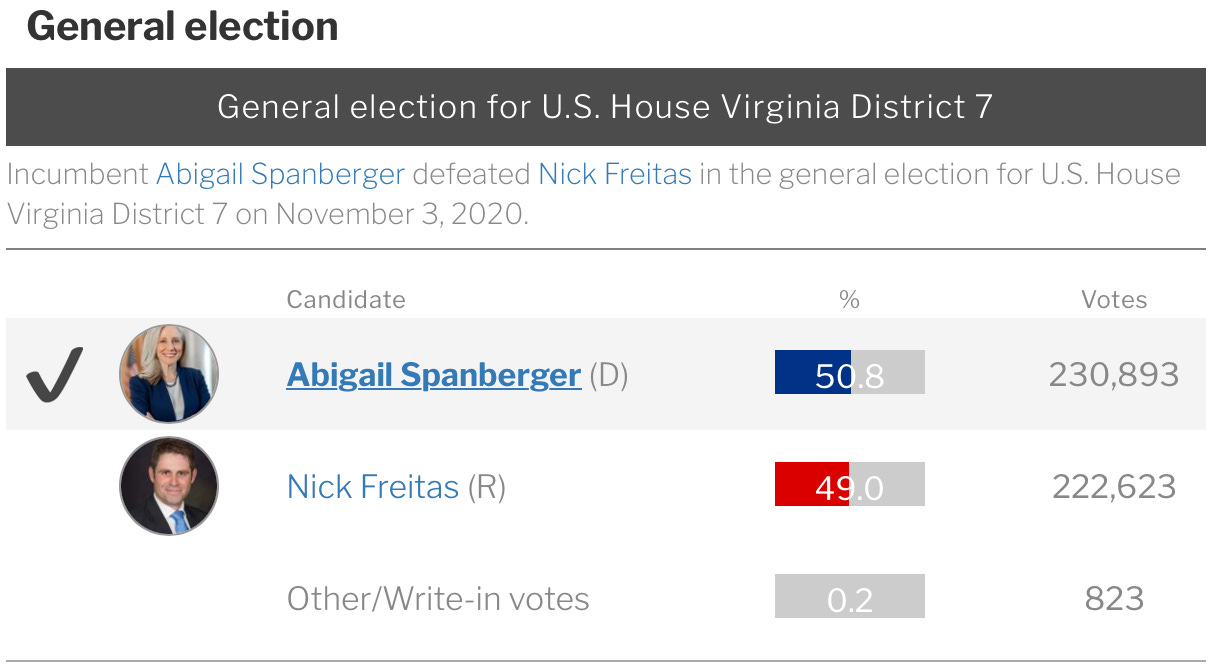 A younger Hillary prototype with a background as a spook (see Slotkin, Elissa), whose 2020 reelection, at least in my evaluation of that year’s election environment in Virginia and VA-7, is highly questionable.