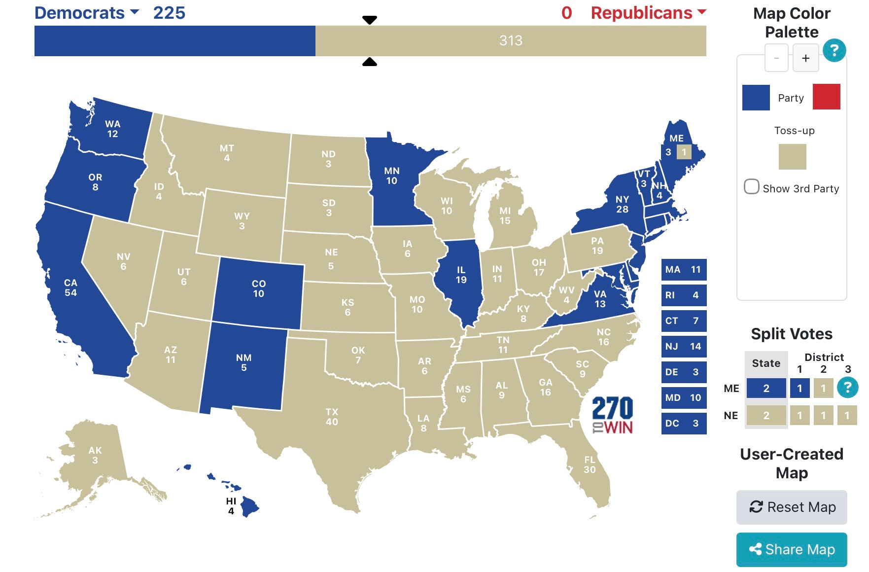 Total: 225 electoral votes