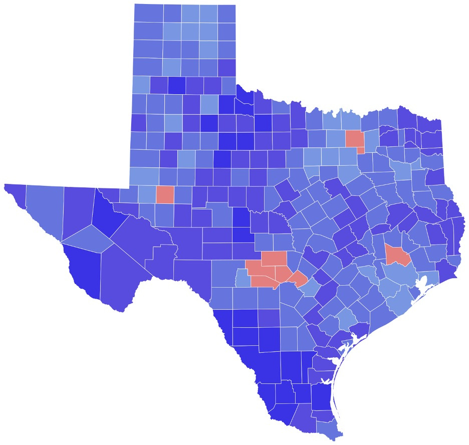 Why are the 1994 Texas statewide results notable? Because 1994 marks the last year in which any Texas Democrat won a statewide race. The legislature has been in Republican hands since the turn of the 21st century, and now that President Trump pushed Texas back out to nearly a 14 point GOP margin with the conversion of the Latino working class and the consolidation of the white conservative base, a decade of Democrat gains have been wiped out in statewide races.