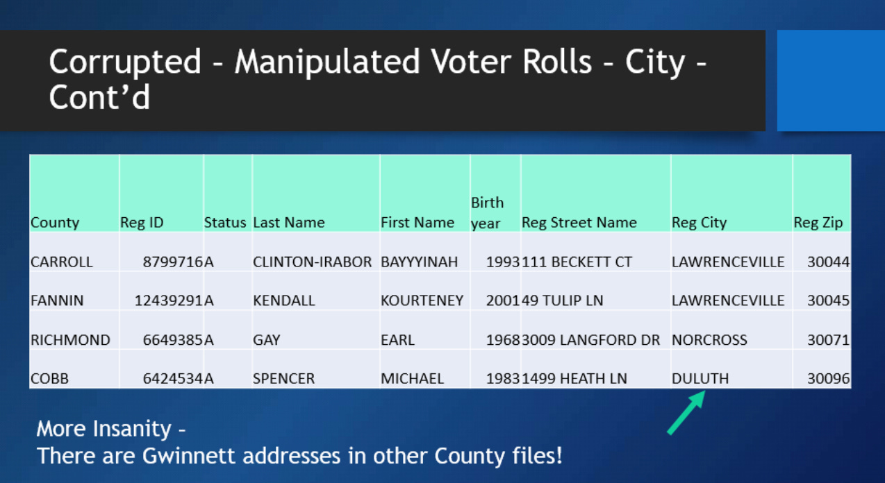 Georgia voter rolls often contain addresses that exist in other counties (see below):