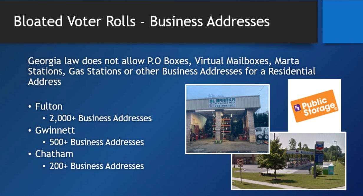 Georgia maintains countless thousands of voter registrations at fictitious addresses.