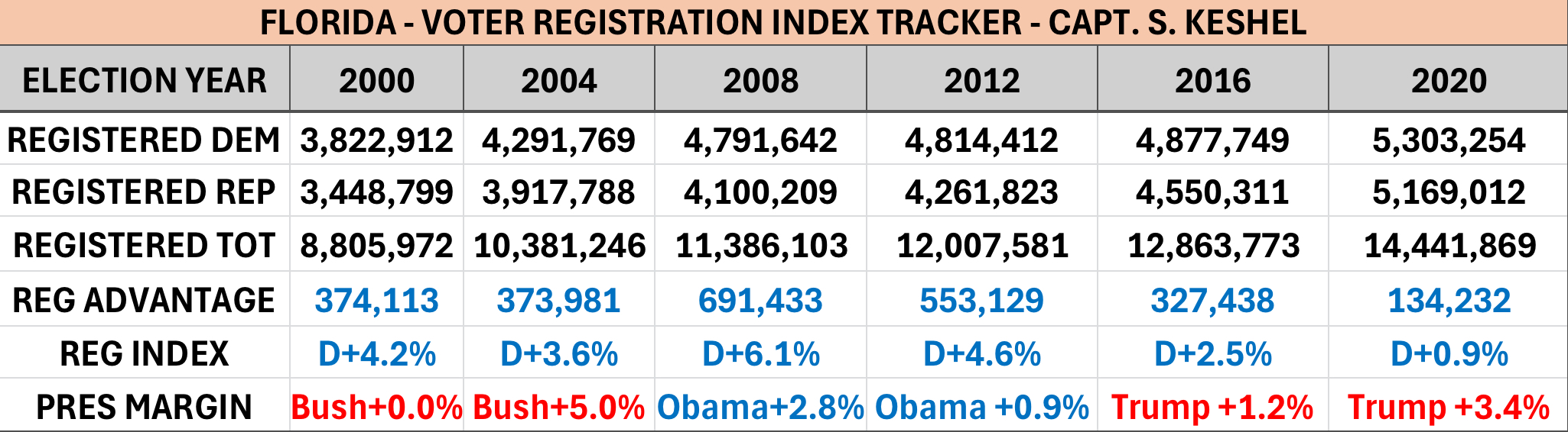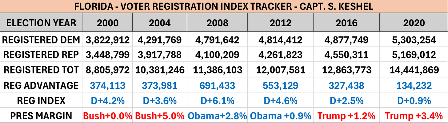Here is how Florida drifted for years with voter registration until Republicans finally broke through after 2020, and turned the state into a GOP stronghold before the 2024 election.