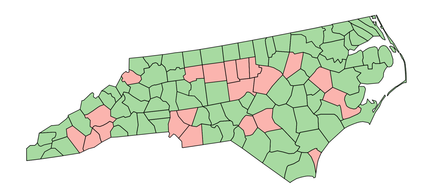 · 7 represent intermediate margin loss between 1,600 and 4,100 votes – Henderson, Watauga, Alamance, Orange, Chatham, Cumberland, and Pitt.