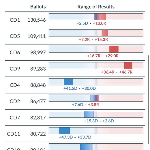 Here is how these districts voted in 2024 for the U.S. House - a Democrat margin of +3.8% - two points to the right of the Trump-Harris margin (important):