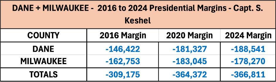 With next-door neighbor Milwaukee County continuing to lose population, some to other states and others to more promising counties with better long-term outlooks, it is imperative that the GOP slide in Waukesha County be stopped, especially since the rest of the state is nearing a max-out point, and gains in population dense areas must occur. Suburban growth equals more apartment buildings to accommodate the influx and brings with it the transient voter registrations that never get deleted and can be exploited for mail-ballot harvesting, which is more difficult to spot as population density increases.