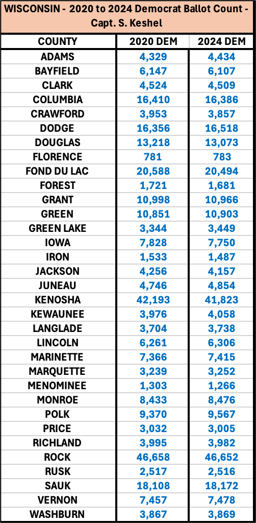 My strongest advice to you, before proceeding further, is to fully review my entry covering the 2024 election in Iowa. It is critical for you to understand the outcome of that election in Wisconsin’s political cousin prior to immersing yourself in this much more complex analysis, which should leap off the page to you as you observe what did not happen in the state featuring a legitimate battle for electoral votes.